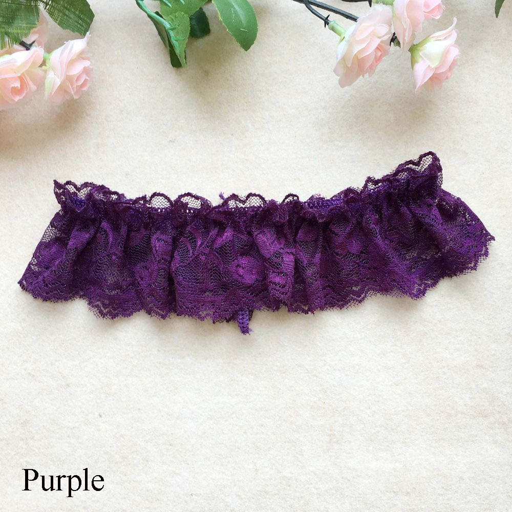 ブラック、パープル、レッド、ローズレッド、ピンク、ホワイトのゴム入りのレースタイプのランジェリーガーターベルト。